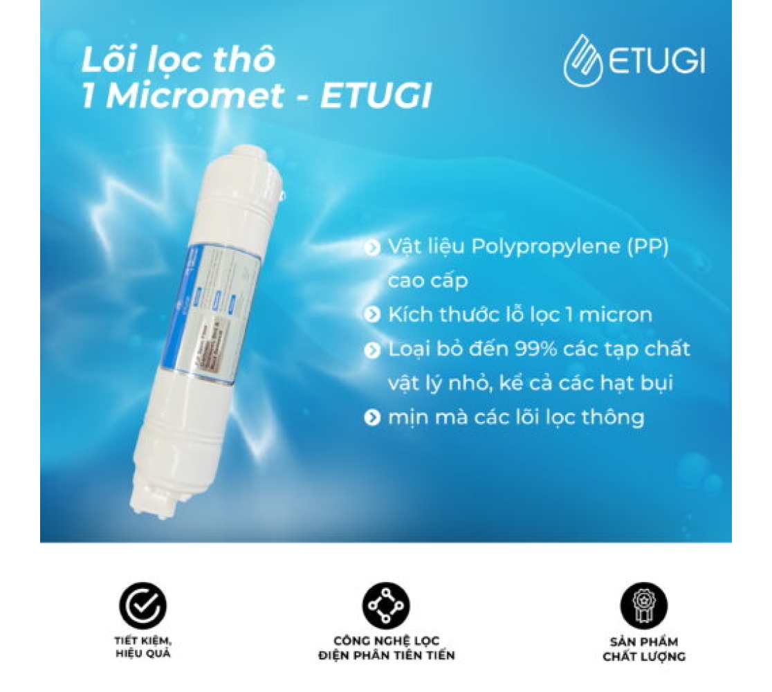 - Khả năng lọc liên tục: Với thiết kế thông minh, lõi lọc PP 1 Micron của ETUGI đảm bảo hiệu quả lọc ổn định và bền vững trong thời gian dài.